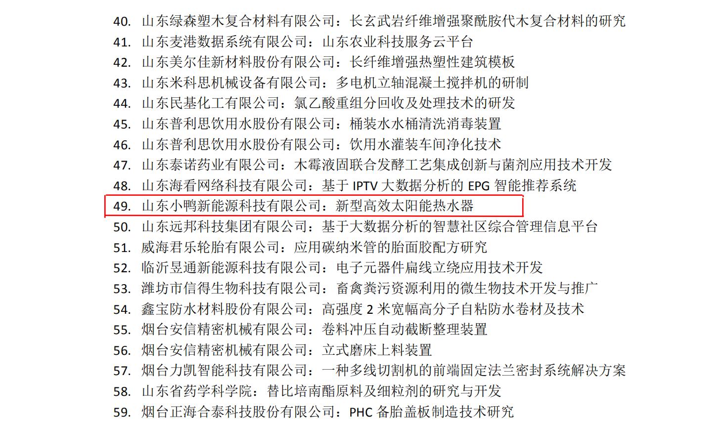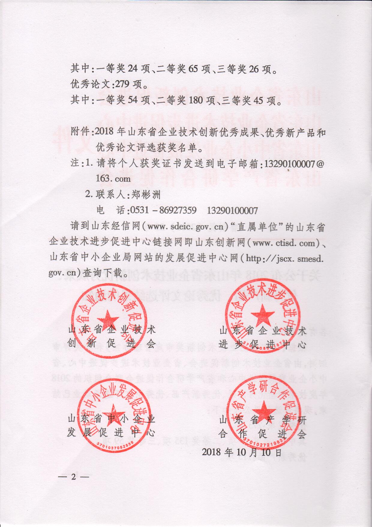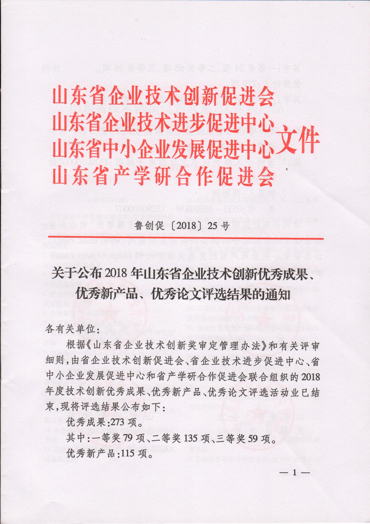 關(guān)于公布2018年山東省企業(yè)技術(shù)創(chuàng)新優(yōu)秀成果、優(yōu)秀新產(chǎn)品、優(yōu)秀論文評選結(jié)果的通知