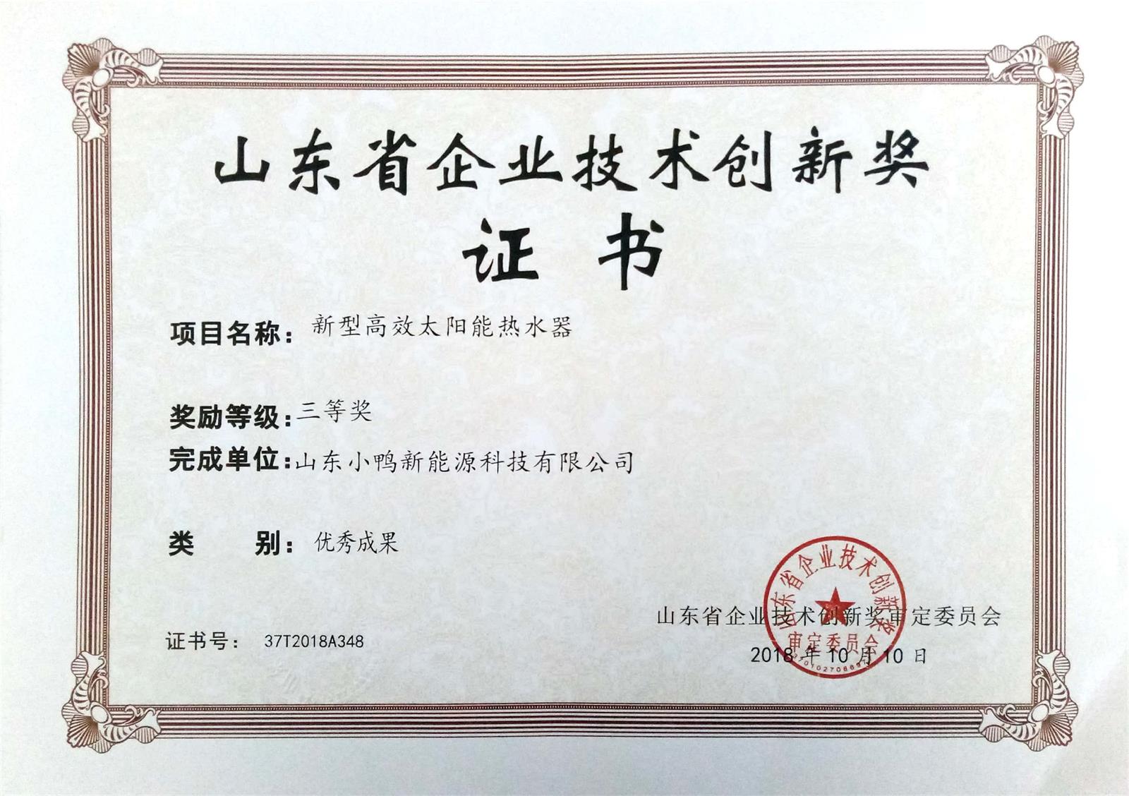 瀏覽量:0近日,由省企業(yè)技術(shù)創(chuàng)新促進(jìn)會、省企業(yè)技術(shù)進(jìn)步促進(jìn)中心、省中小企業(yè)發(fā)展促進(jìn)中心和省產(chǎn)學(xué)研合作促進(jìn)會聯(lián)合組織的2018年度技術(shù)創(chuàng)新優(yōu)秀成果、優(yōu)秀新產(chǎn)品、優(yōu)秀論文評選結(jié)果揭曉,我公司“新型高效太陽能熱水器”榮獲山東省企業(yè)技術(shù)創(chuàng)新優(yōu)秀成果三等獎。