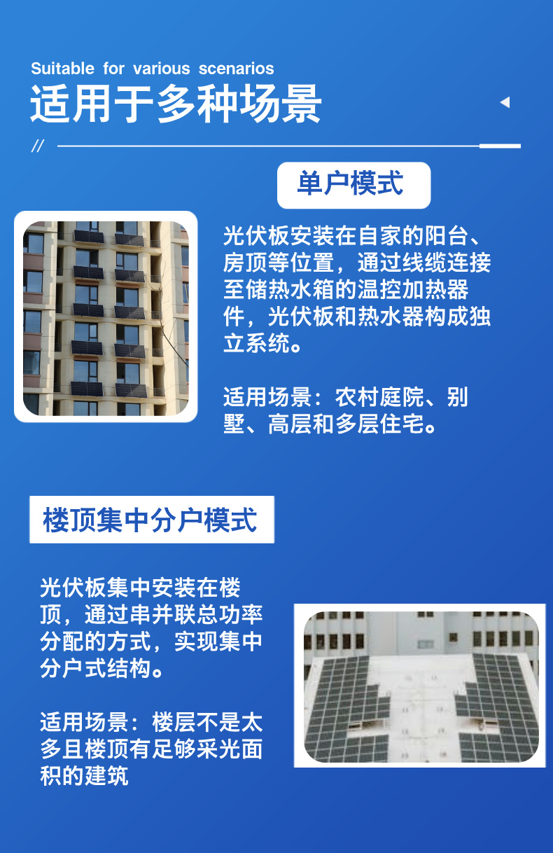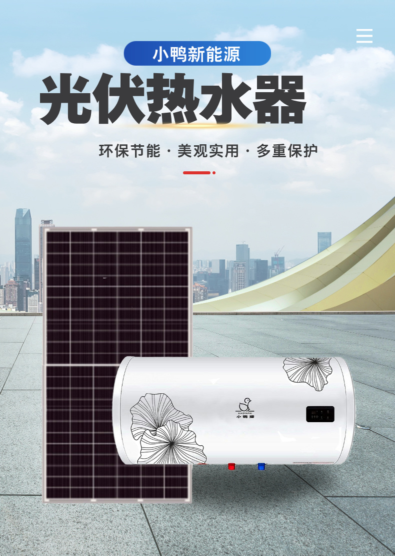 通過光伏板組件將太陽光的光子能量轉(zhuǎn)換成電能。這些電能隨后被用于加熱熱水器中的水。具體來說,當(dāng)光線照射到光伏板(主要由多晶硅等能產(chǎn)生光伏效應(yīng)的半導(dǎo)體材料制成)表面時,光子能量被硅材料吸收,導(dǎo)致電子發(fā)生躍遷,形成自由電子并產(chǎn)生電位差。通過外部接通的電路,電流在電壓的作用下流過電路,產(chǎn)生一定的輸出功率,進(jìn)而對水進(jìn)行加熱。