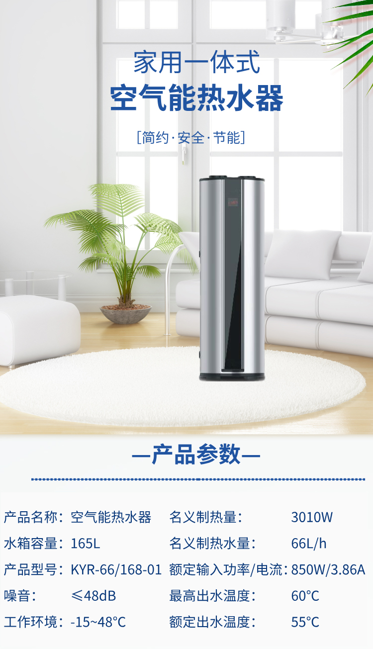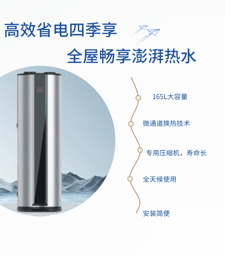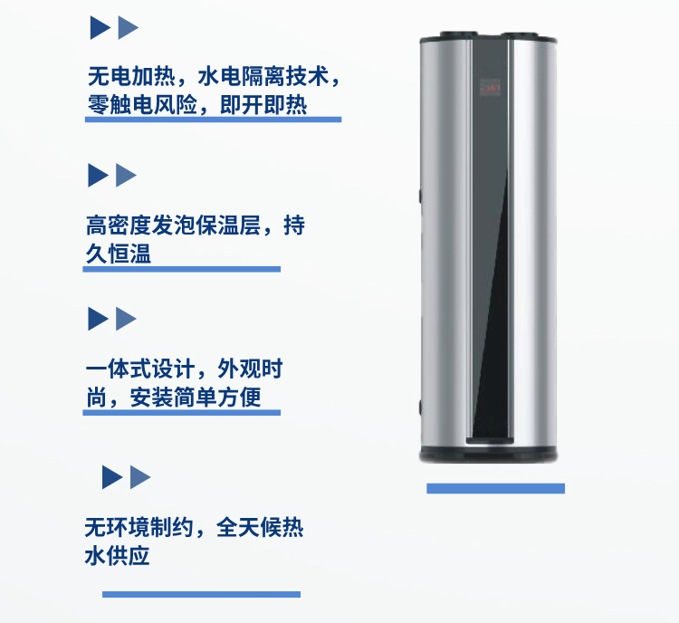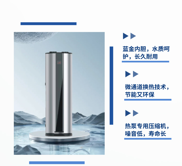 基于“逆卡諾”原理工作??諝饽軣崴魍ㄟ^(guò)壓縮機(jī)做功,使制冷劑在蒸發(fā)器內(nèi)蒸發(fā)氣化,吸收空氣中的熱量,然后通過(guò)壓縮機(jī)提高制冷劑的溫度,再通過(guò)冷凝器使制冷劑液化,釋放出熱量傳遞給水箱中的水,從而使水溫升高。